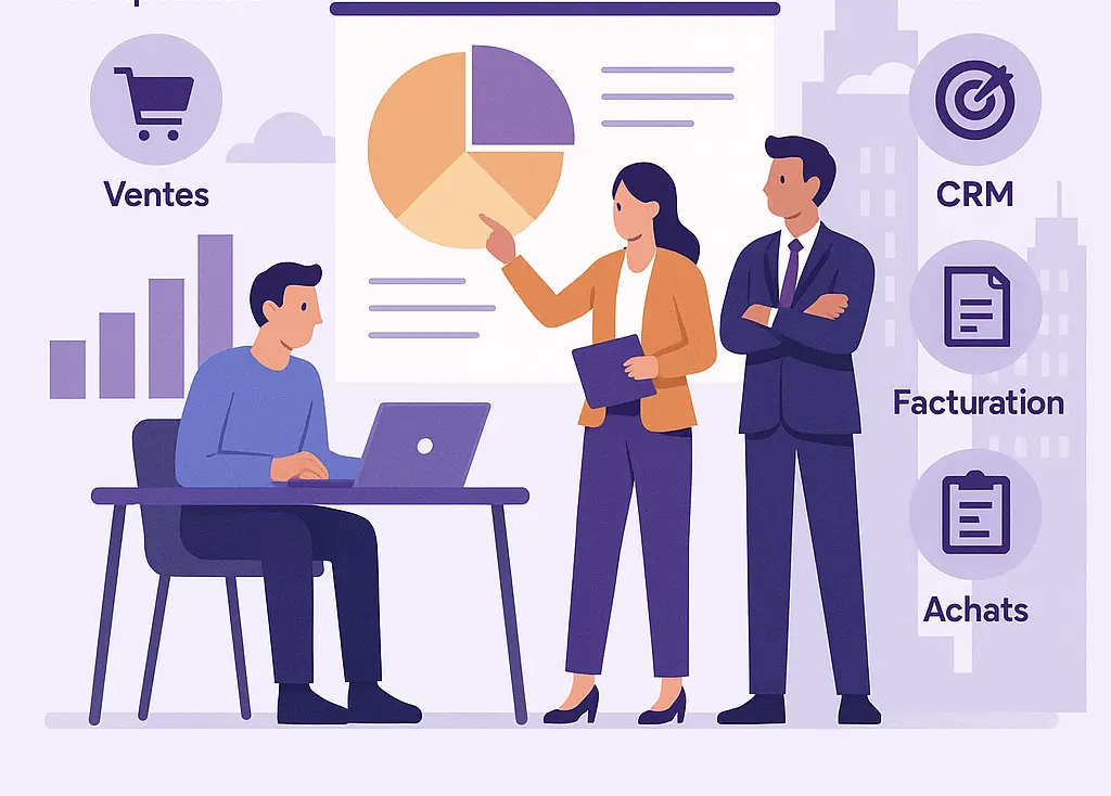 - 🔗 Intégration complète → CRM, ventes, achats, RH, projets dans une seule plateforme.